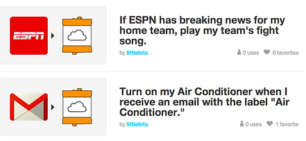 리틀비츠 클라우드 모듈은 복잡하고 어려운 코드를 사용하지 않고도 IFTTT를 사용하여 쉽게 프로그래밍 할 수 있습니다.